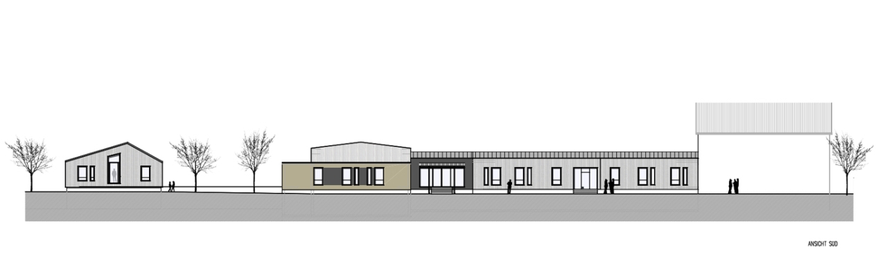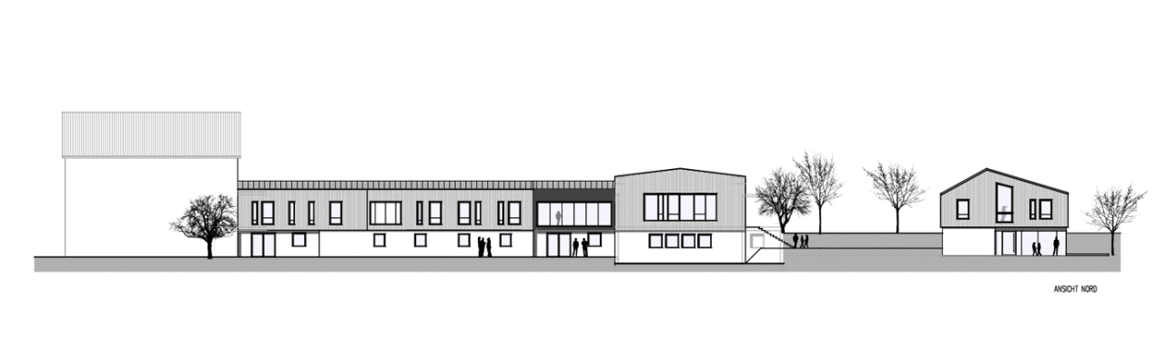 Das Bauvorhaben teilt sich in zwei Bauabschnitte. Zuerst wird eine neue Wohngruppe errichtet, die Ende 2023 fertigstellt wird. Im Anschluss wird das Verwaltungsgebäude aus den 1970 Jahre umgebaut und modernisiert.